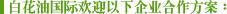 如果白花油国际是您寻找已久的结盟合作伙伴,无论是现有产品或新产品的开发,都能满足您最大的需求。欢迎您跟我们连络,我们将尽速安排相关人员与您联系。期盼与您的合作成功,让双方及消费者共创三赢!