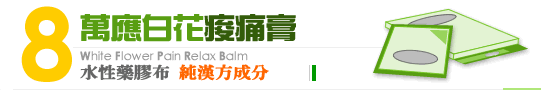 萬應白花痠痛膏藥膠布為GMP優良藥廠所生產的漢方鎮痛貼布,藥性溫和持續。本產品使用方便,一次完成貼於患部,免除一般組合式背膠貼布張貼的麻煩與不便。